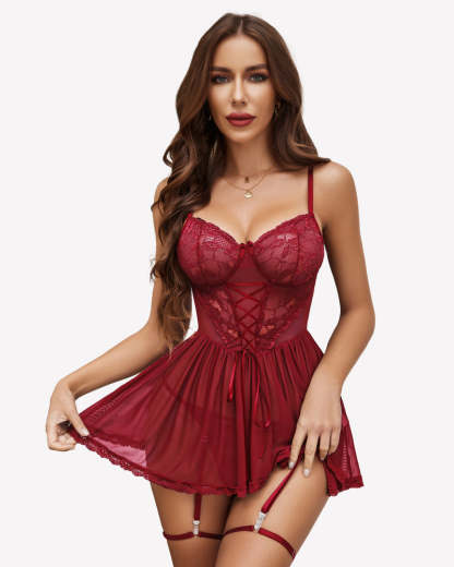 Package: 1 x Lingerie Set with Garter Belts. 1 x Thong